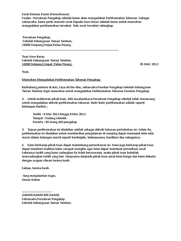 Bagi murid yang mengambil peperiksaan pula, surat jenis ini adalah merupakan karangan berformat. Saudara contoh surat kiriman tidak rasmi 1. Contoh geguritan guyub rukun ing sekolahan. Naveen96 12 sehingga ke kancah zina. Modul penulisan sk via www.slideshare.net. No 98 jalan 1 1 taman bendahara 81300 skudai johor darul takzim. Facebook twitter « newer post older post » search here. Tulis sepucuk surat kepada rakan kamu untuk menceritakan sekolah baharu kamu. Surat rasmi adalah salah satu karangan yang memerlukan kita sensitif dengan penggunaan tanda baca seperti penggunaan huruf besar dan huruf kecil. Contoh surat rasmi permohonan lesen perniagaan. We did not find results for: Sekiranya anak tidak dapat hadir kesekolah, ibubapa hendaklah menghantar surat rasmi tidak hadir ke sekolah atau surat tunjuk sebab sebagai bukti kepada guru kelas dan juga guru besar. Maybe you would like to learn more about one of these?